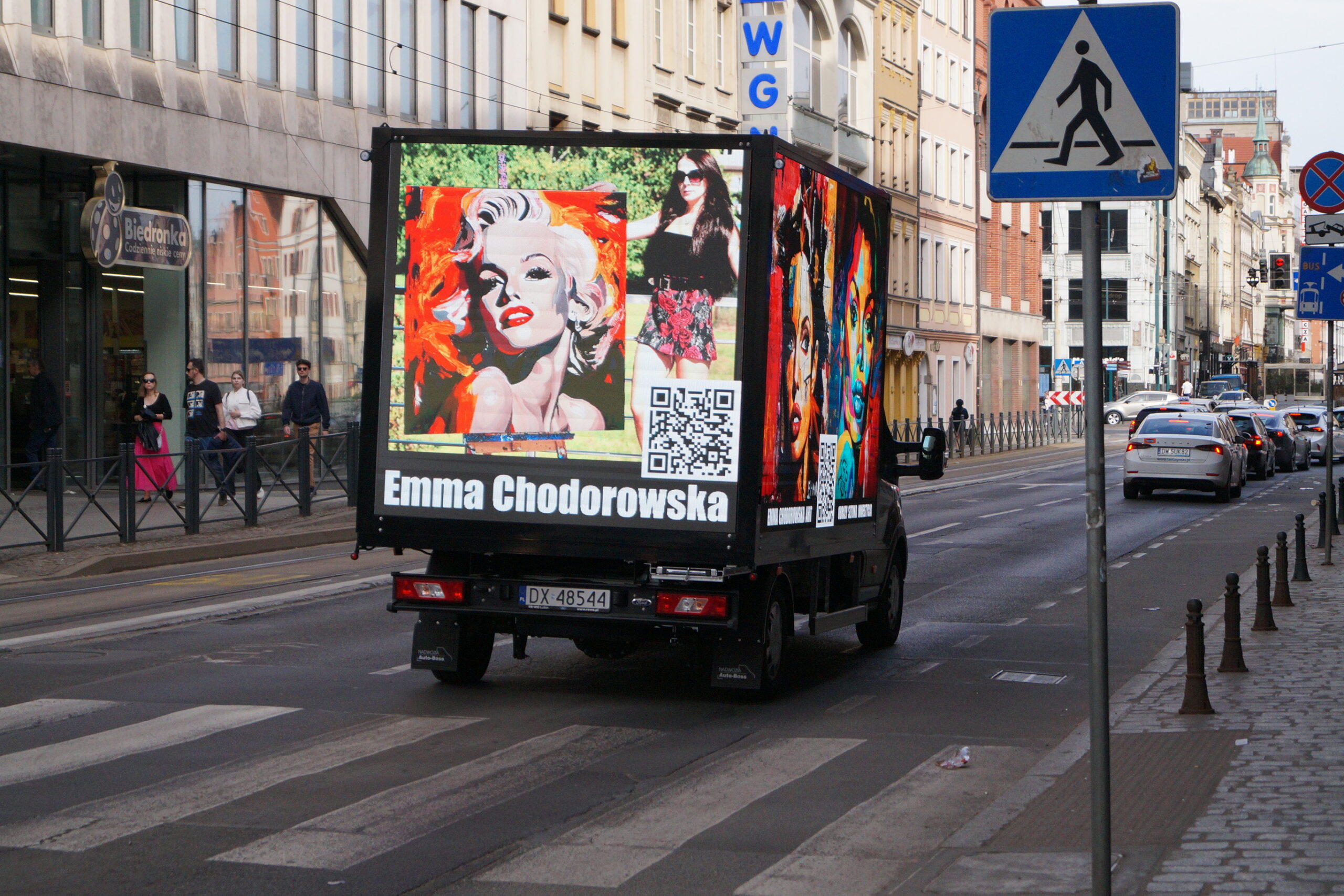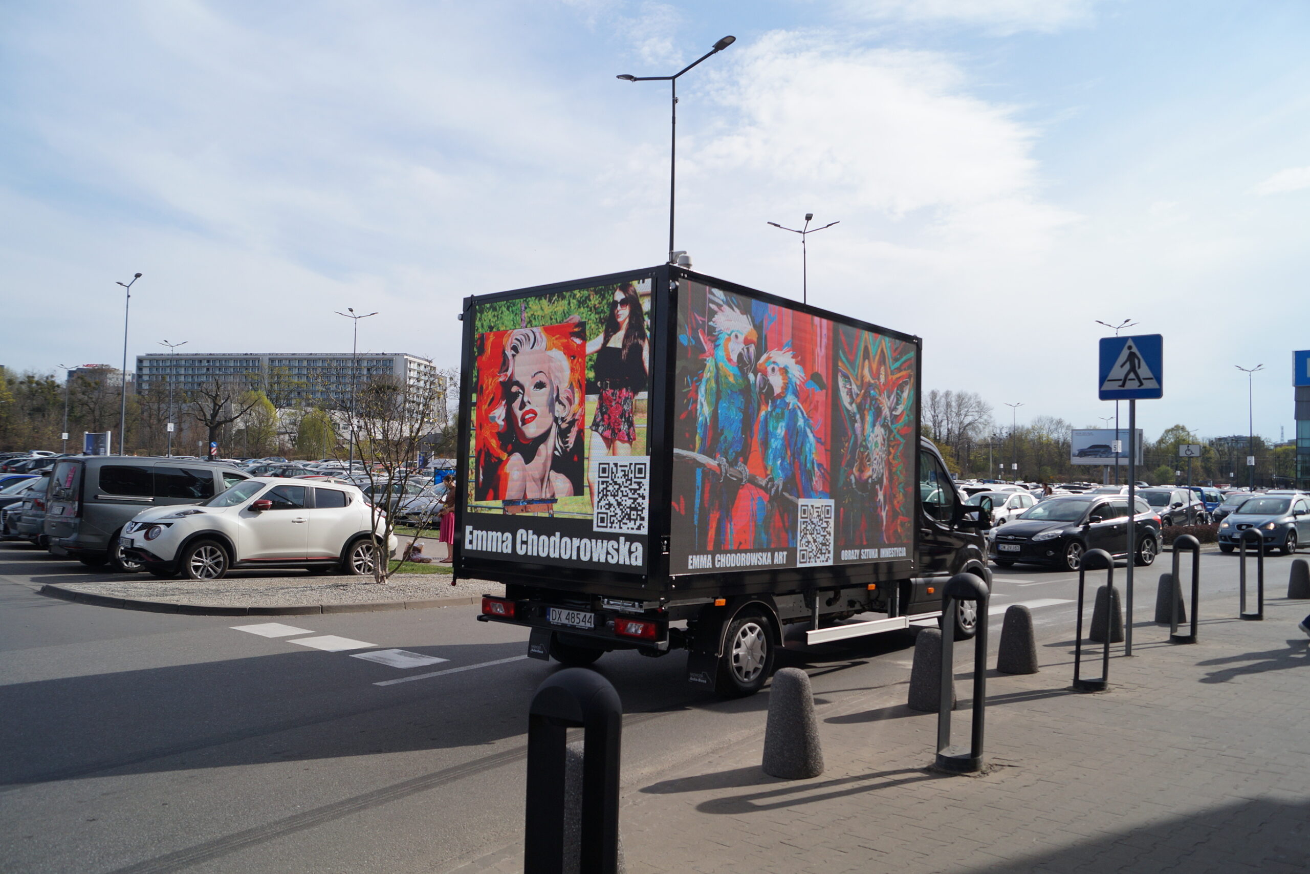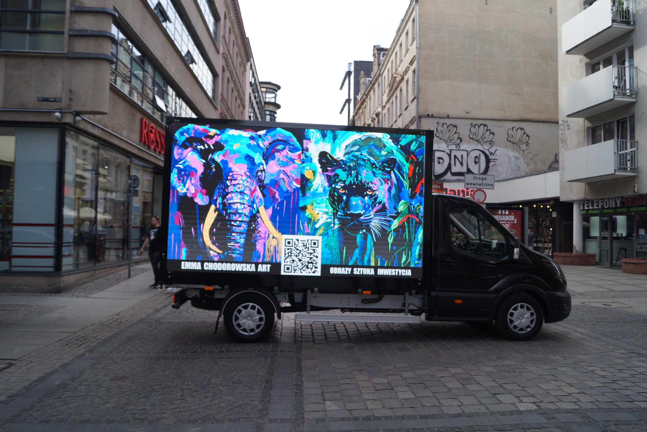 Ekrany boczne 3,5m x 2m oraz tylny 2m x 2m. Łącznie 18m2 powierzchni reklamowej w technologii LED. Stały dostęp do Intenetu LTE zapewnia możliwość zmiany treści online w dowolnym momencie poprzez aplikacje.